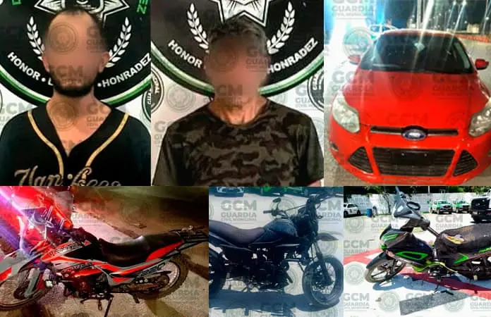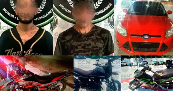 Agentes de Guarda Civil Municipal de Soledad localizaron tres motocicletas, una con placas sobrepuestas y dos con reporte de robo vigente, y otro vehículo con placas sobrepuestas, logrando la detención de dos individuos.