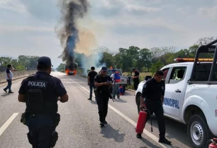 Al auxilio acudieron oficiales de la Policía Municipal de Tancanhuitz, así como de Aquismón, y el conductor les informó que circulaba con dirección de Ciudad Valles a Tamazunchale cuando, de pronto, comenzó a salir humo del cofre y apenas le dio tiempo de orillarse.
