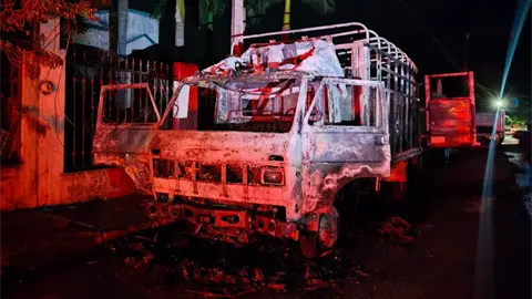 Vecinos del sector relataron que fueron despertados por fuertes estruendos y, al salir de sus domicilios, observaron el camión envuelto en llamas, con el fuego alcanzando cables aéreos y una lámpara de alumbrado público.