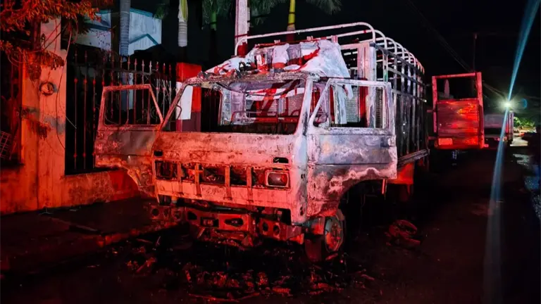 El hecho ocurrió poco antes de las 4:00 horas sobre la calle Obregón, entre Manuel González y General Anaya, en la colonia Hidalgo. Las unidades se encontraban estacionadas: un camión con redilas, propiedad de un comerciante, y un automóvil compacto perteneciente a un familiar.