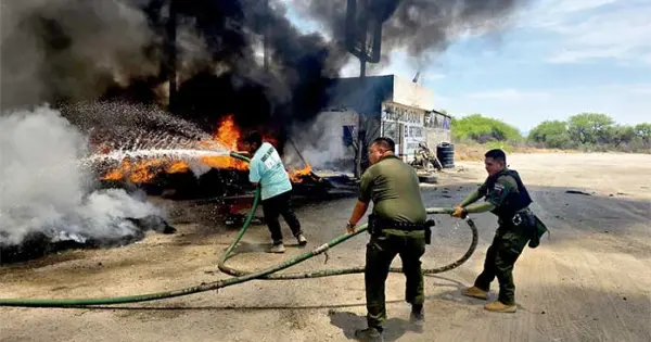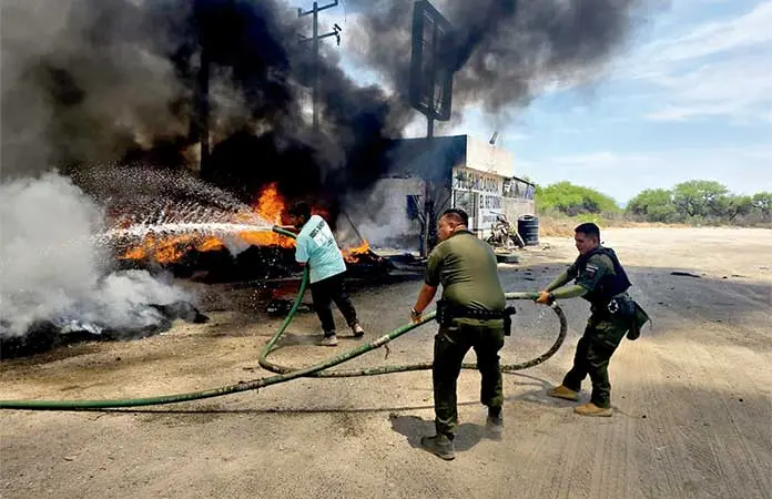 Fue al mediodía de este viernes, que se reportó a las corporaciones de auxilio que se estaba quemando la vulcanizadora “El Retorno”, ubicada en el kilométro 54 de la carretera a Matehuala, en Villa Hidalgo.