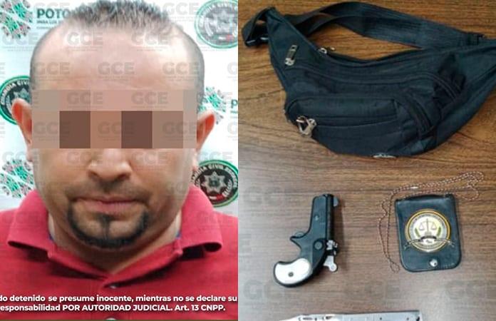 Un hombre que se hacía pasar como policía de investigación, fue arrestado por agentes de la Guardia Civil Estatal que realizaban recorridos de seguridad y vigilancia en la zona metropolitana.