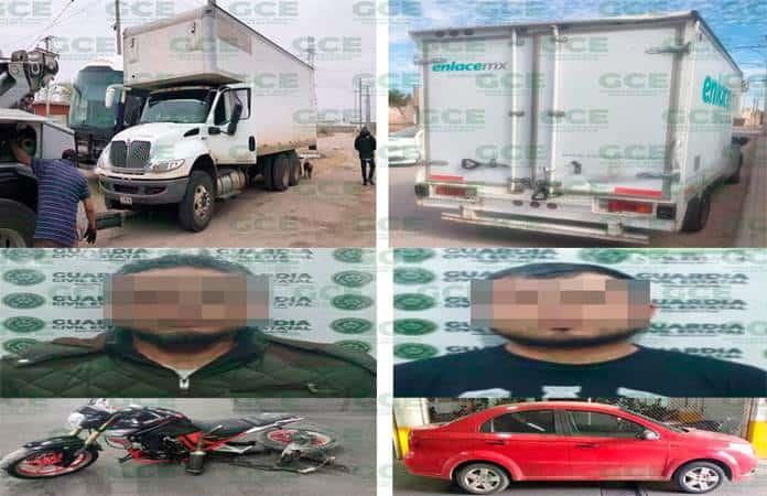 Elementos de la Guardia Civil Estatal detuvieron a dos sujetos que manejaban vehículos con reporte de robo y recuperaron otras dos unidades mediante los operativos preventivos y de seguridad.