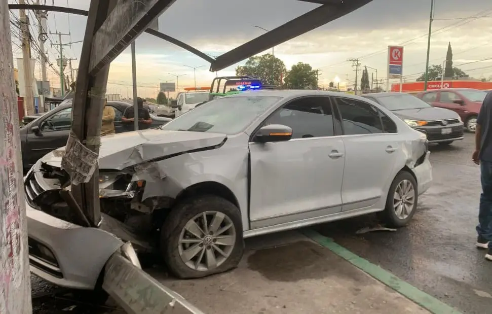 El accidente fue reportado alrededor de las 17:00 horas y estuvo involucrada una camioneta Honda blanca y un automóvil Volkswagen Jetta gris. Este último terminó impactado contra la estructura del parador de autobuses ubicado en la zona.