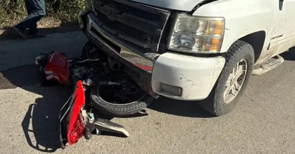 Fuentes oficiales informaron que conducía una motocicleta Italika roja, cuando intentó rebasar una camioneta tipo panel; sin embargo, no logró reincorporarse a su carril y chocó de frente contra una camioneta Chevrolet Cheyenne blanca.