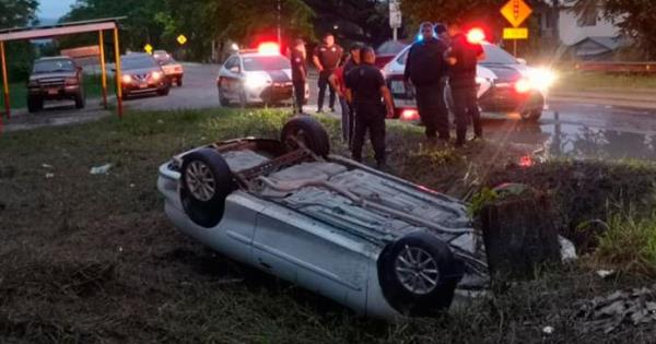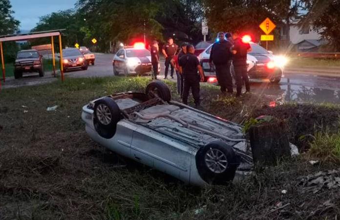 Sin embargo, metros adelante había un hoyo o dren pluvial, y el muchacho no lo vio, pues estaba muy oscuro, por eso volcó su unidad, la cual quedó llantas para arriba. De milagro el joven no sufrió lesiones y pudo salir por sí mismo del sedán.