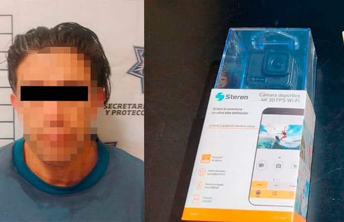 Locatarios del sector alertaron a los agentes municipales de que un hombre sustrajo una cámara Go-Pro de una tienda de electrónica y enseguida huyó con dirección a la plaza del Carmen. Derivado de la oportuna presencia policial, se logró ubicar al sujeto en un comercio ubicado en las calles Universidad y Escobedo donde trató de ocultarse tras el aparador.