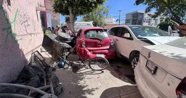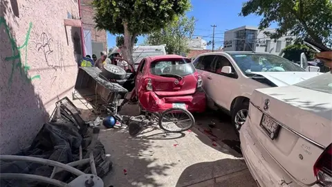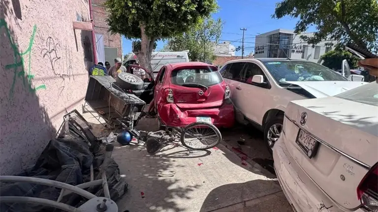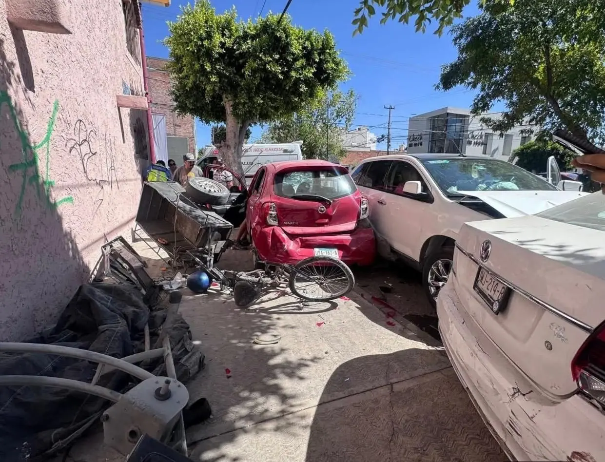 Tras el choque, el Nissan March fue proyectado contra una camioneta Renault Duster que se encontraba estacionada, un Volkswagen Vento de color blanco y una bicicleta con remolque acoplado.