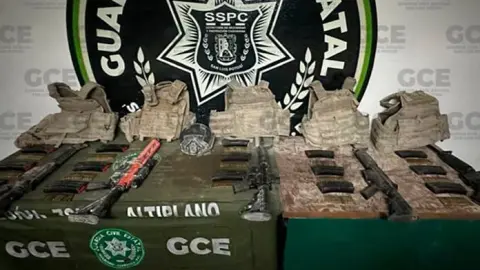 Dentro del inmueble ubicado en los límites con el estado de Nuevo León, señalado como campo de adiestramiento por parte de un grupo criminal, se encontraron cinco armas largas tipo carabina multi calibre, 15 cargadores metálicos, 225 cartuchos en diferentes, cinco chalecos y un casco tácticos.