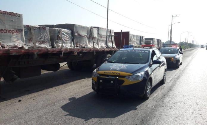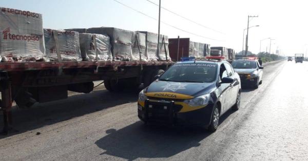 Además se localizaron dos plataformas abandonadas sobre Periférico Norte a la altura de la colonia Los Salazares, se trataba de dos remolques acoplados con 36 tarimas de vitropiso con la leyenda “Tecnopiso”.