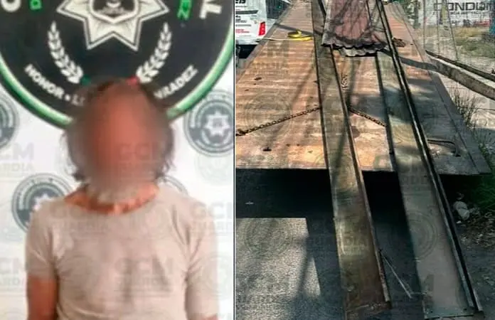 Cuando los agentes municipales transitaban sobre la avenida Valentín Amador, en la colonia mencionada, observaron a un individuo que coincidía con un reporte previamente recibido por alteración del orden, el cual arrastraba cuatro hojas de lámina y, al notar la presencia de la autoridad, intentó escapar.