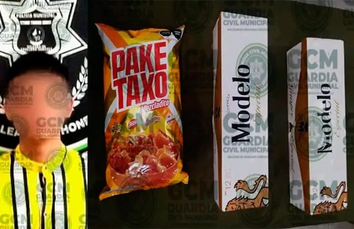 Un hombre y un menor que intentaron robar cerveza y botana de un OXXO de la colonia Las Huertas, fueron capturados por elementos de la Guardia Civil Municipal de Soledad.