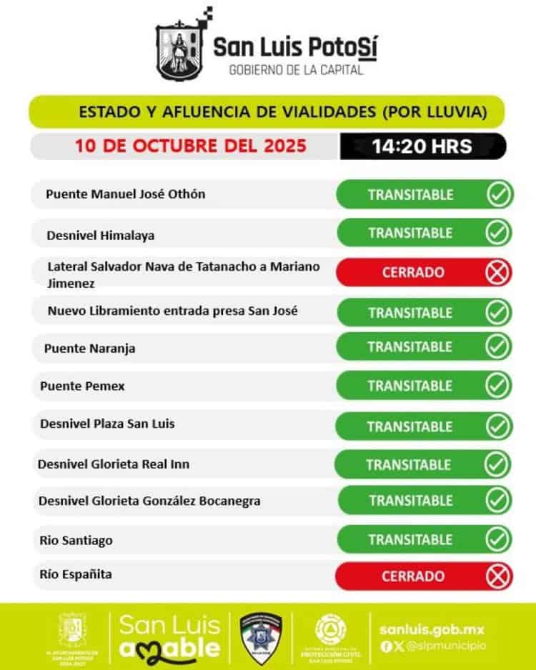La Secretaría de Seguridad y Protección Ciudadana (SSPC) informó que este viernes por la tarde se mantiene cerrado el bulevar del Río Españita.