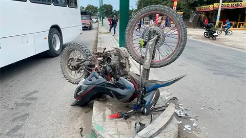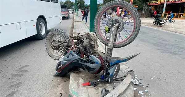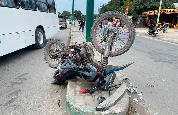 Tras el choque, el joven salió proyectado varios metros, mientras que la motocicleta terminó sobre el camellón central, con las llantas hacia arriba.