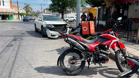 Un motociclista resultó lesionado luego de chocar contra una camioneta que se le atravesó en la avenida Nereo Rodríguez Barragán, por lo que tuvo que ser trasladado a un hospital a recibir atención médica.