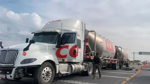 Elementos de la Guardia Civil Estatal, División Caminos, aseguraron la zona como primeros respondientes y aseguraron al chofer del tráiler para presentarlo ante el Ministerio Público para que rindiera su declaración y se le defina su situación legal.