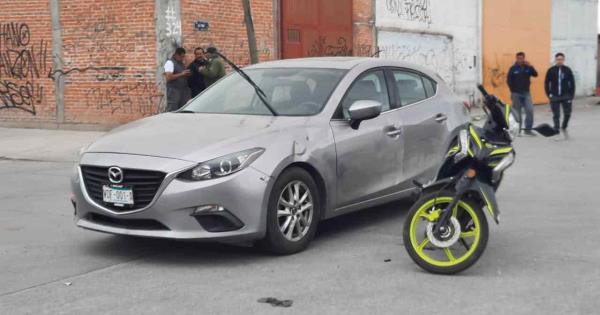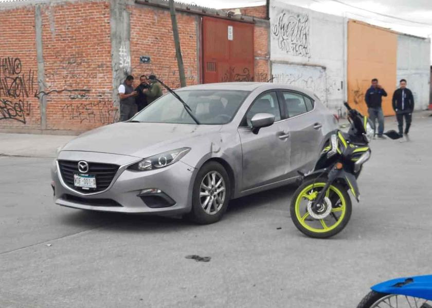Un automovilista y un motociclista protagonizaron un aparatoso accidente durante la mañana de este viernes en la coloina Jaime Torres Bodet, perteneciente a Soledad de Graciano Sánchez.