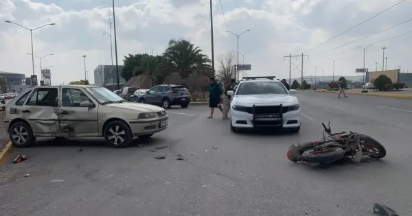 Un motociclista resultó seriamente lesionado al chocar con un vehículo sedán en Avenida de las Torres y calle Francisco Martínez de la Vega, frente a la Fenapo.