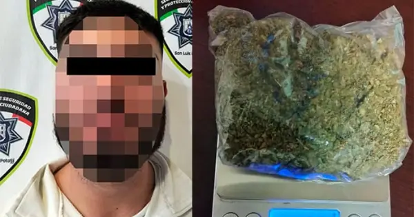 Como resultado de los patrullajes de seguridad sobre la zona oriente de la ciudad, agentes municipales efectuaron la detención de un hombre en posesión de un envoltorio que contenía hierba seca verde similar a la marihuana.