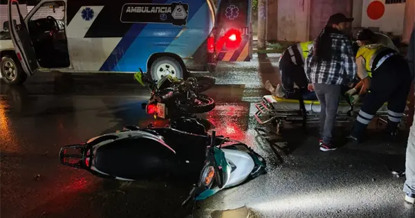 Tras el choque, ambos cayeron al pavimento. El conductor logró incorporarse, pero la mujer quedó tendida debido a lesiones en una pierna y en la espalda.