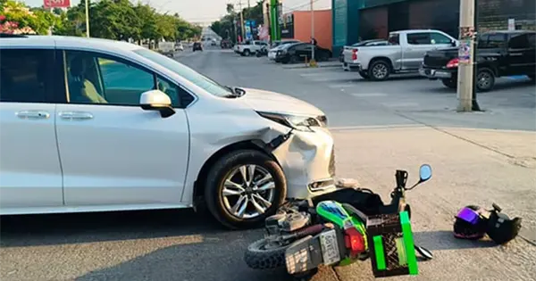 De acuerdo con la información recabada, una mujer al volante de una vagoneta Toyota Sienna blanca, modelo reciente, se desplazaba con dirección del fraccionamiento Lomas Oriente hacia Lomas Poniente. Sin embargo, al intentar atravesar el bulevar, no tomó las precauciones necesarias y cortó la circulación al conductor de una motoneta Italika verde. Este no logró detenerse y chocó contra la camioneta.