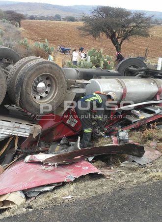 El accidente fue registrado durante el transcurso de la mañana de ayer sobre la carretera estatal La Pila-Villa de Arriaga, a la altura del kilómetro 167, lugar hasta donde acudieron tanto los cuerpos de socorro como agentes de la policía.