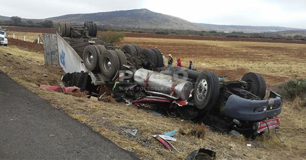 Conductor de un tráiler que transportaba mensajería perdió la vida entre los fierros retorcidos de la unidad que guiaba, luego de salir de la carretera estatal por donde transitaba y terminar por volcarse.