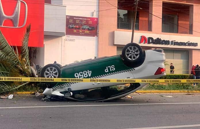 El pasajero de un taxi perdió la vida luego de que la unidad chocara contra una palmera y volcara en la avenida Carranza, en tanto que el conductor resultó lesionado y fue llevado a un hospital a recibir atención médica.