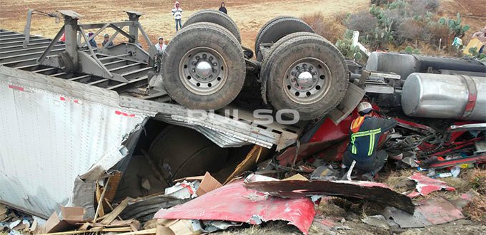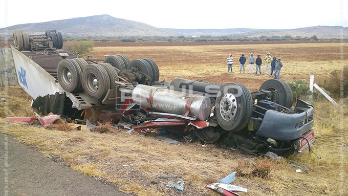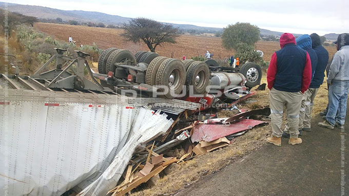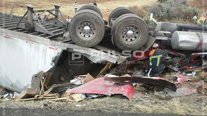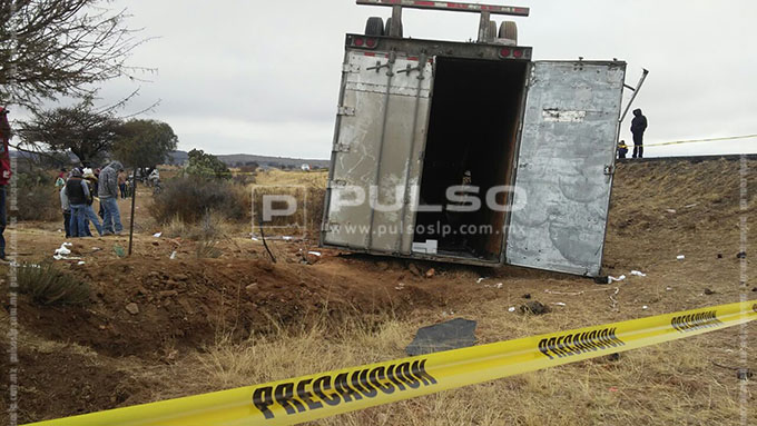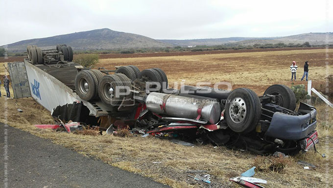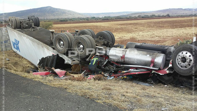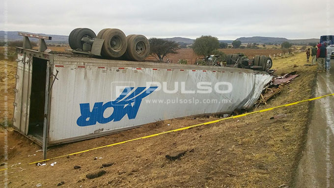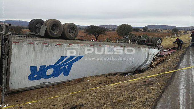 La mañana de este jueves el conductor de un tráiler que transportaba mensajería murió aplastado por la unidad que guiaba, tras volcar en la carretera de cuota San Luis- Villa de Arriaga, que une la carretera a México (‘57) y la rúa a Guadalajara ('80).