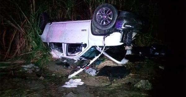 Poco después llegaron policías, quienes encontraron una camioneta GMC blanca, modelo reciente, con las llantas hacia arriba, a la orilla del camino y entre unos cañaverales.