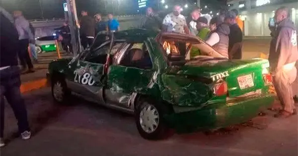 Los hechos se registraron a las dos de la mañana de este lunes, cuando el taxi número económico 2180, un Nissan Tsuru de color verde, transitaba por los carriles centrales de la carretera a Matehuala en dirección del distribuidor Juárez hacia el Anillo Periférico.