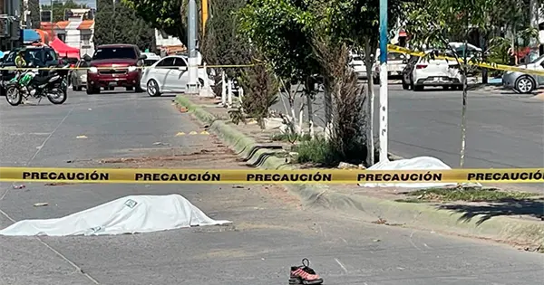 Un cuerpo quedó sobre el camellón junto a un poste de alumbrado, en tanto que el otro acabó sobre la superficie de rodamiento.