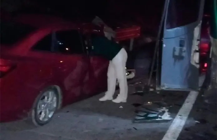 Un hombre chocó su carro contra un autobús y el otro derrapó al circular en motocicleta