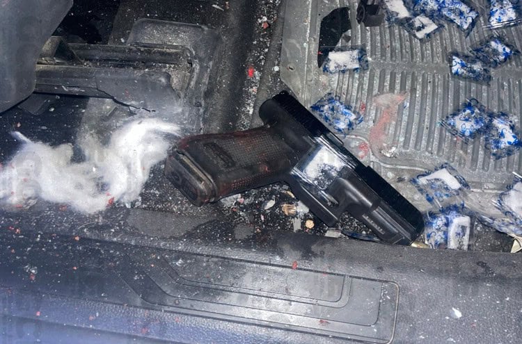 En los hechos, se aseguraron armas de fuego y drogas en una camioneta