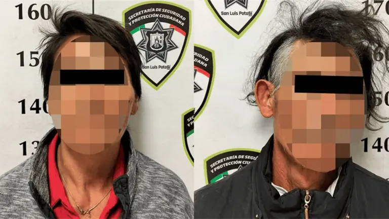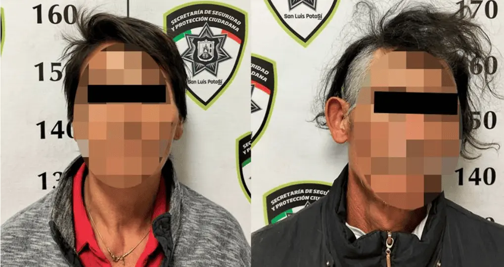 Las personas fueron identificadas como Servando "N" y Juana María "N", ambos de 55 años. Tras la certificación médica correspondiente, quedaron a disposición de la Fiscalía General del Estado de San Luis Potosí, instancia que determinará su situación legal.