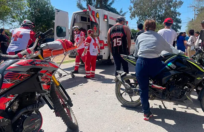 El hecho tuvo lugar cerca de la 1:30 de la tarde de este domingo cuando los motociclistas, un hombre y una mujer, circulaban sobre la calle María Teresa en la colonia referida y fue al arribar al cruce con Ana Gaby impactaron contra un automóvil que les cortó la circulación siendo proyectados al pavimento y se causaron lesiones considerables.