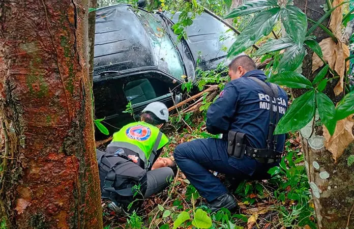 De acuerdo con el reporte emitido por elementos de Seguridad Pública y Protección Civil Municipal, una camioneta negra tipo Explorer, se salió del camino y cayó a un voladero con una profundidad aproximada de entre 20 y 30 metros. Tras el reporte, acudieron al auxilio elementos de Protección Civil Municipal y Seguridad Pública de este Municipio, quienes rescataron a las personas lesionadas, y posteriormente fueron trasladadas a un hospital para su valoración médica. Hasta el momento, no se ha informado sobre la gravedad de las lesiones.