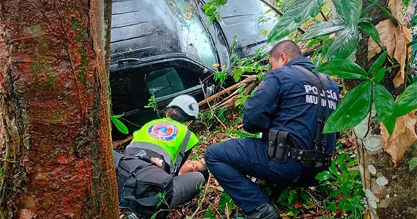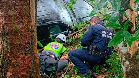 Pareja resulta lesionada al caer a un barranco