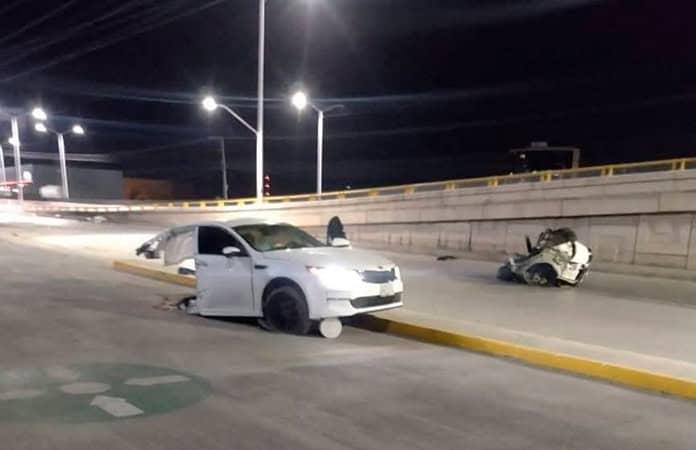 En la parte donde inicia el puente de la avenida Chapultepec, el conductor perdió el control del volante y así se estampó contra un objeto fijo, al parecer un poste, quedando el carro partido a la mitad quedando separados los asientos delanteros con el trasero.