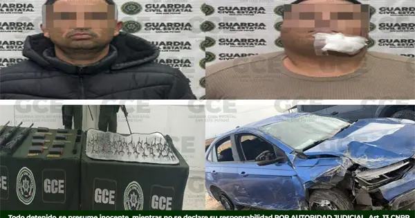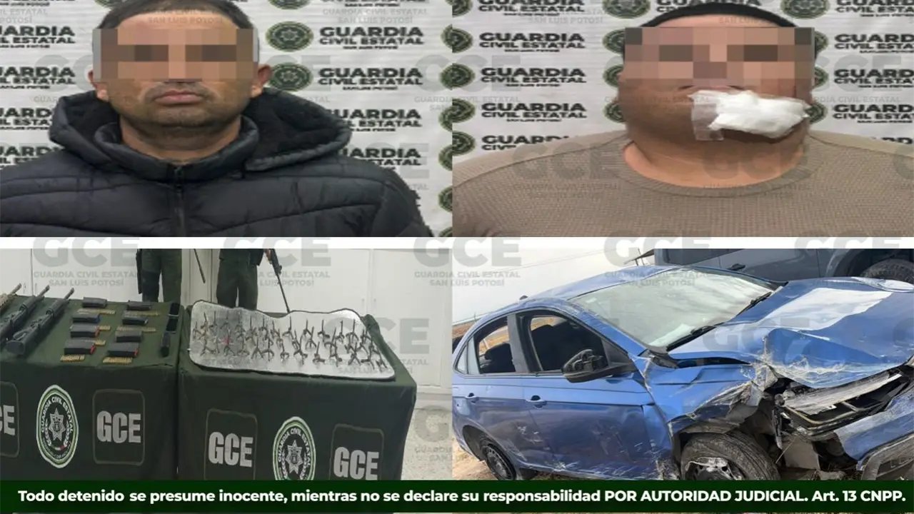 También se aseguró un vehículo VW Virtus modelo 2024 en color azul con reporte de robo con violencia el 06/11/2025 en Matehuala, mismo que tras los hechos quedó volcado. Los presuntos que dijeron confirmar una célula del CDG quedaron a disposición de la FGE para lo que determine.