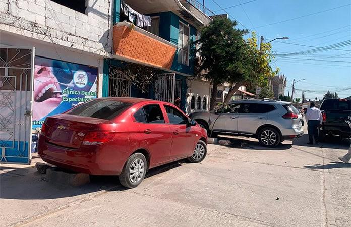 Sin embargo, al estar herido apenas avanzó media cuadra y entonces chocó el auto contra una camioneta Nissan Xtrail de color gris, así como contra dos jardineras.