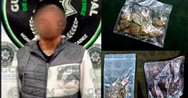 En la avenida José de Gálvez, a la altura de la colonia Genovevo Rivas Guillén Sur, los agentes municipales observaron a un individuo que cometía faltas administrativas en la vía pública, mismo con el que se acercaron para entrevistarlo y se identificó como Brayan “N” de 17 años de edad, encontrándole una bolsa con marihuana.