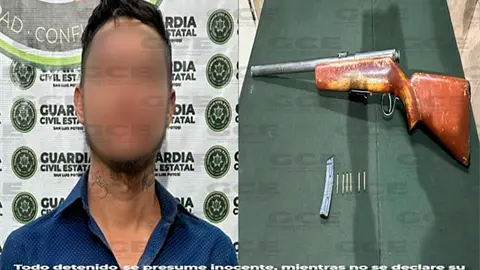 Derivado de los trabajos preventivos, desarrollados en el municipio de Villa de Arriaga, efectivos de la Guardia Civil Estatal atendieron un reporte del C5i2, donde indicaban que un sujeto había sido visto en la localidad El Mezquital con un arma de fuego. De inmediato arribaron al lugar y visualizaron al presunto, quien, al notar la presencia de los uniformados, pretendió agredir a los elementos, tras detonar un arma de fuego larga.