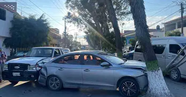Al aproximarse a la calle de Desierto de Atacama, el conductor no guardó su distancia de seguridad y así chocó por alcance contra un automóvil MG de color gris, el cual a causa del impacto fue proyectado contra un árbol que se localiza en el camellón central.