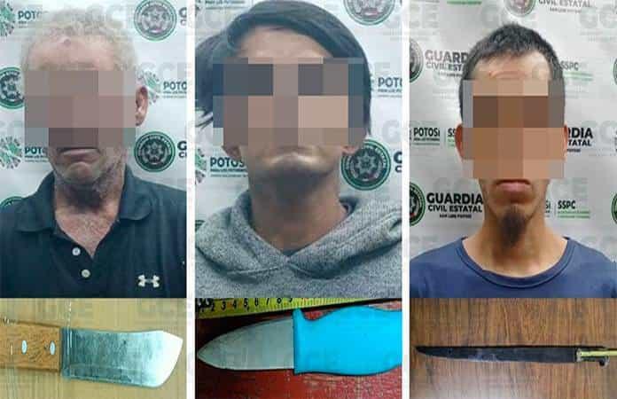 En acciones de vigilancia implementadas por agentes de la Guardia Civil Estatal en la ciudad y su zona conurbada, tres hombres fueron detenidos con armas blancas; uno de ellos en la capital potosina y dos más en el municipio de Soledad de Graciano Sánchez.
