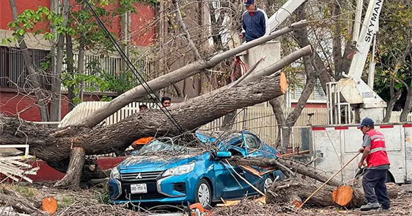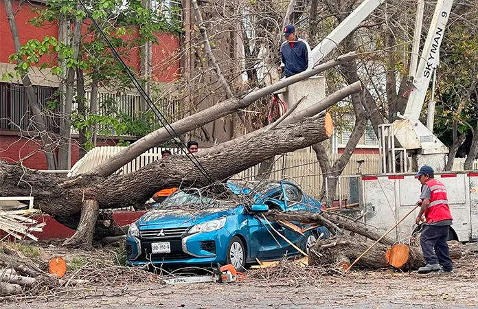 Luego del hecho, personal de Protección Civil Municipal acudieron al sitio para trozar el árbol y retirarlo para así liberar el carro, que prácticamente quedó en pérdida total.
