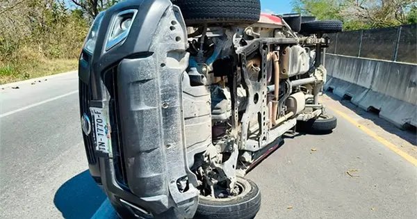 Pero, presuntamente, un neumático trasero se le reventó, por lo que perdió el control del volante e invadió el carril, chocando de manera lateral contra un camión cañero que iba vacío; posteriormente, la Nissan volcó sobre uno de sus costados.