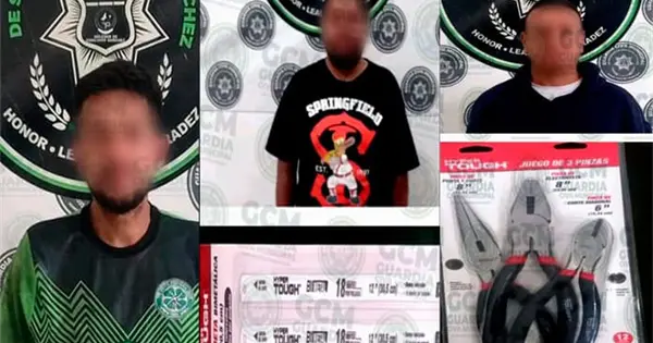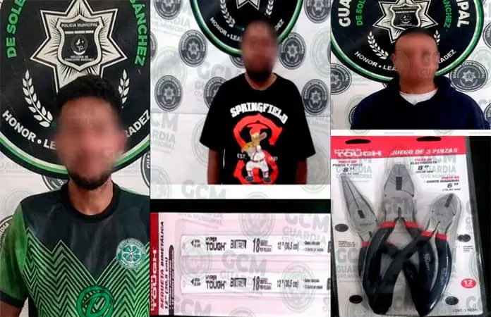 Oficiales de la Guardia Civil de Soledad detuvieron a dos sujetos que cometieron un robo en una Bodega Aurrerá y otro más que quiso meterse a hurtar a otro negocio, esto en respuesta a reportes ciudadanos.