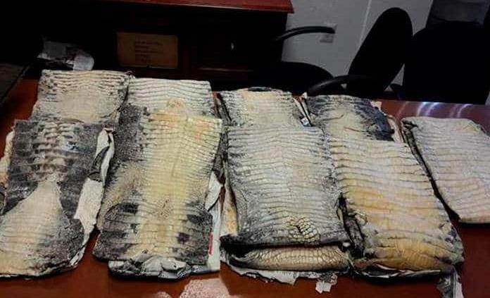 Al realizar la identificación, los inspectores de la Procuraduría determinaron que las pieles corresponden a cocodrilo de pantano o Moreleti (Crocodylus moreletii), dieron un peso total de 42.42 kilogramos.