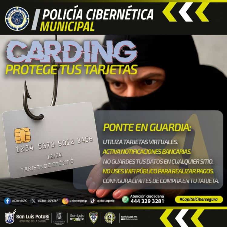 La Secretaría de Seguridad y Protección Ciudadana (SSPC) emitió una serie de recomendaciones para la prevención del "carding", un tipo de fraude digital con las tarjetas bancarias.